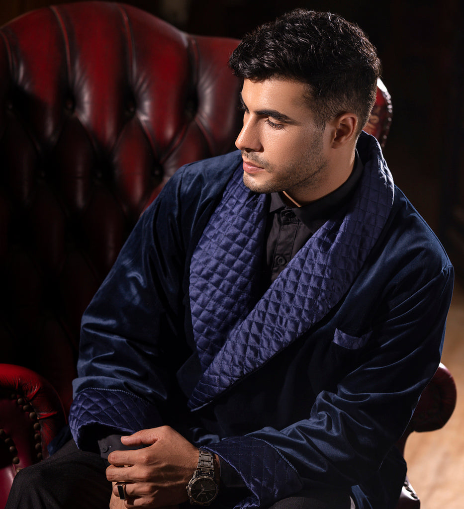 Velvet Smoking Jacket - Burgundy with Black Quilted Collar