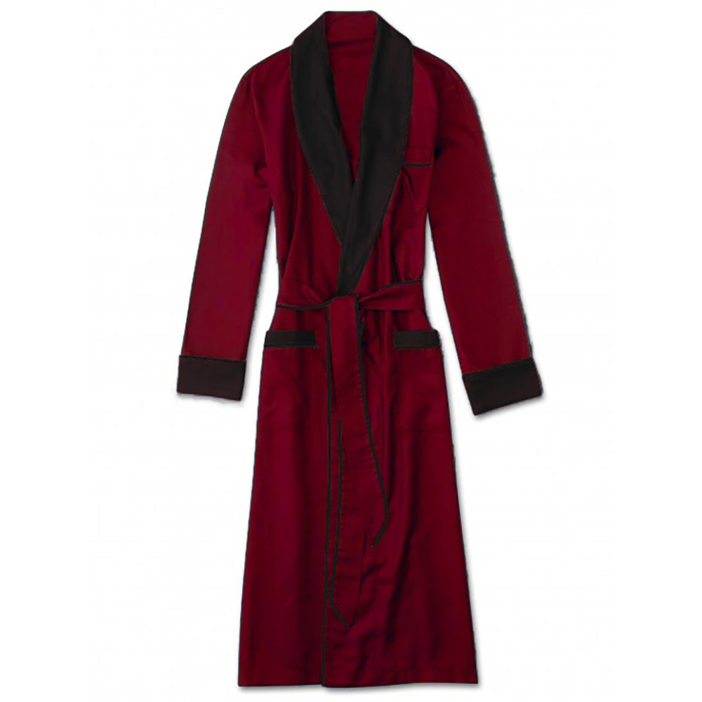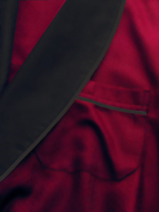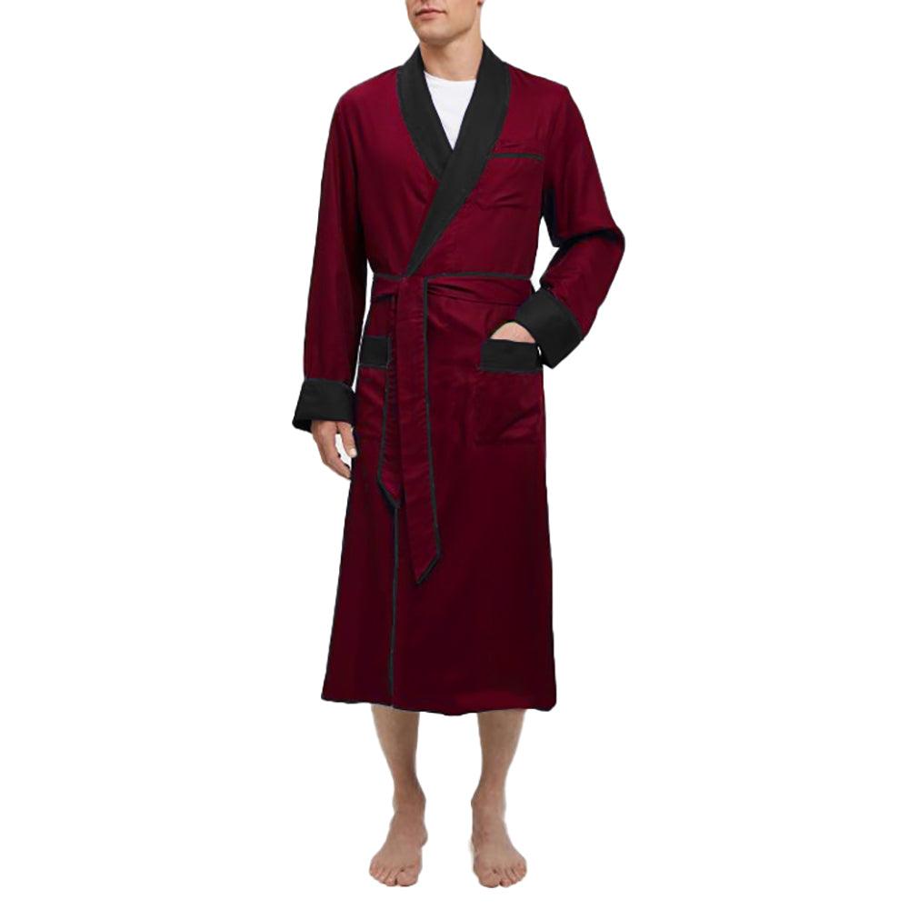 Heavyweight Burgundy Silky Satin Robe with Contrasting Black Shawl Collar
