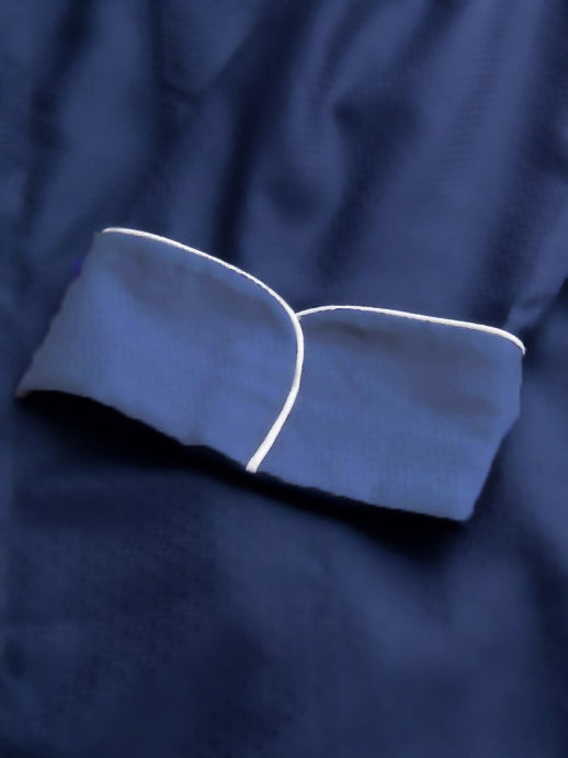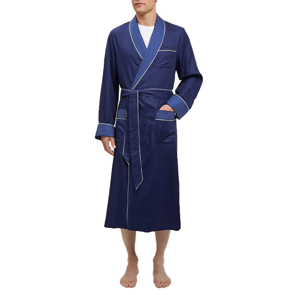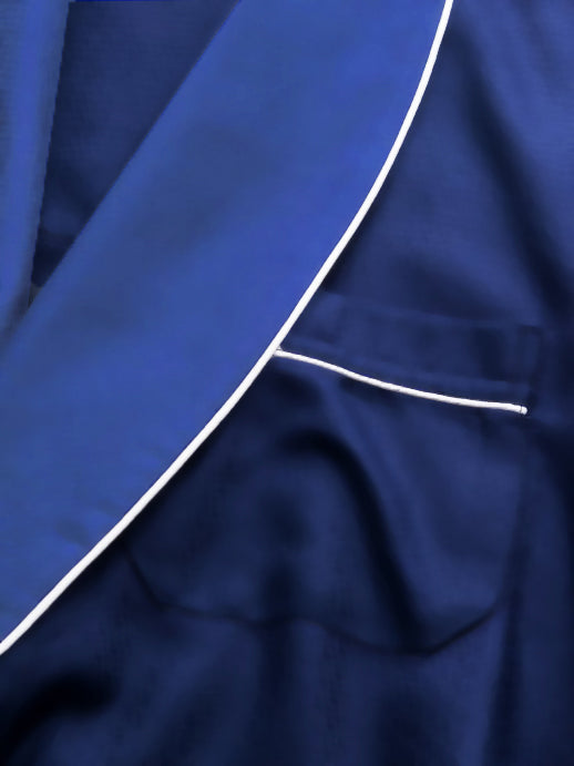 Navy Silky Satin Robe with Contrasting Blue Shawl Collar