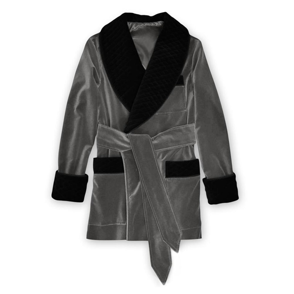 Velvet Smoking Jacket - Grey with Black Quilted Collar