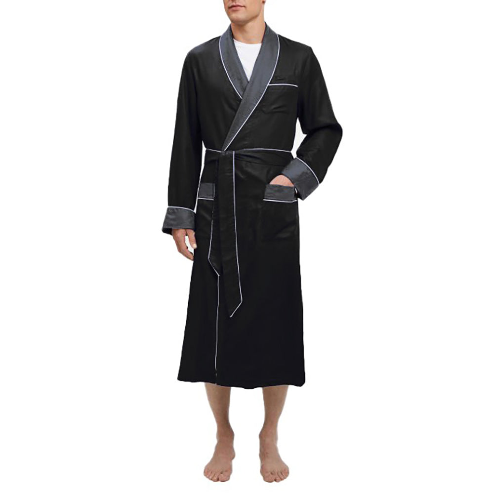 Heavyweight Black Silky Satin Robe with Contrasting Grey Shawl Collar