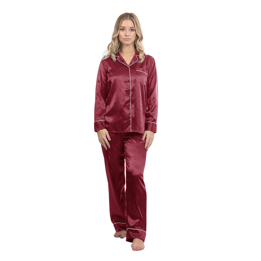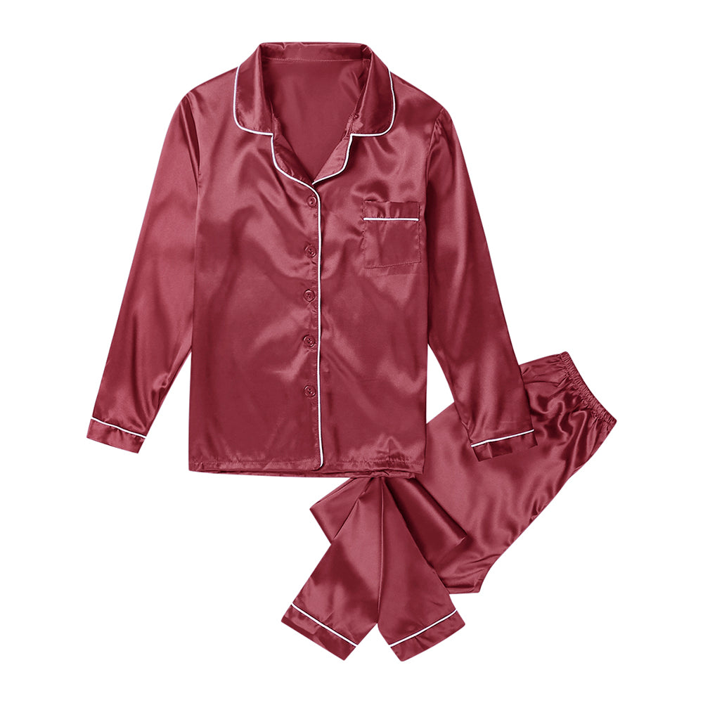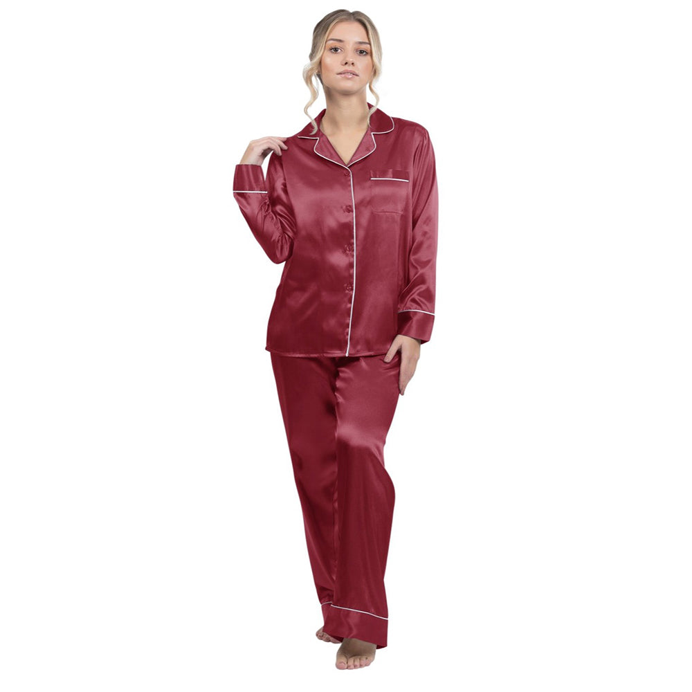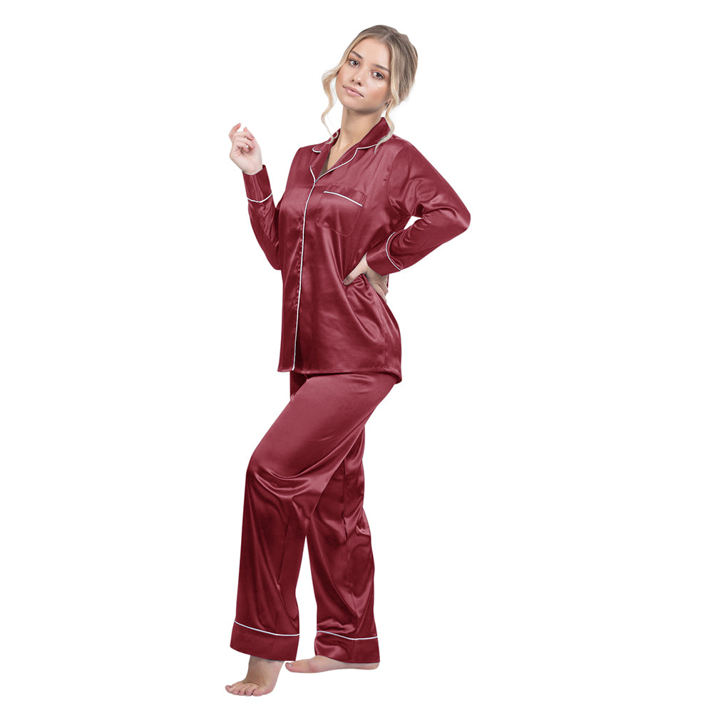 Silky Satin Pajama Set - Burgundy
